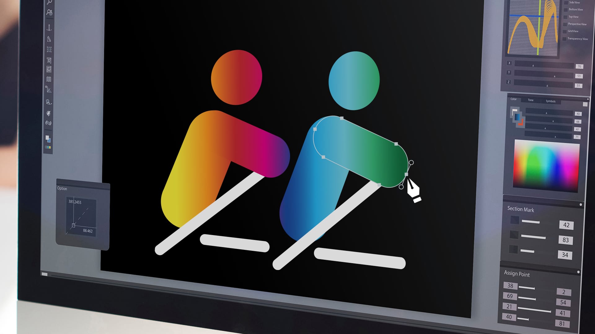 To better understand the industry, we also conducted thorough research into logos from like-minded sight-loss and rowing organisations. This helped us create a series of diverse and inclusive initial designs that were truly distinctive. These designs drew inspiration from the physical action of a rowing stroke and its effect on the water’s surface, while also incorporating the rainbow gradient and brand colours from Love Rowing’s main logo. We also included simple, immediately recognisable characters for broad appeal and inclusivity.